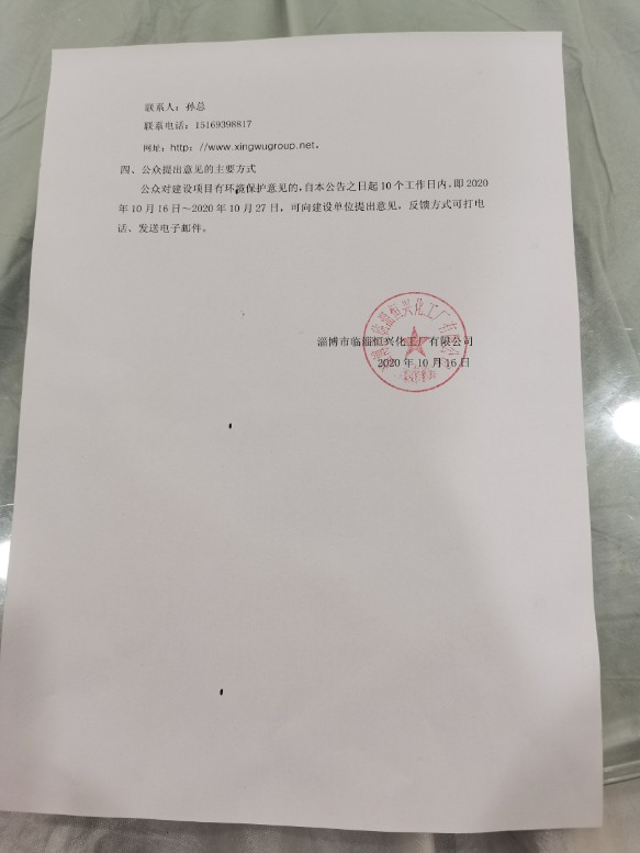 淄博市临淄恒兴化工厂有限公司10万吨/年沥青轻组分加氢精制 项目配套环境保护设施调试公示